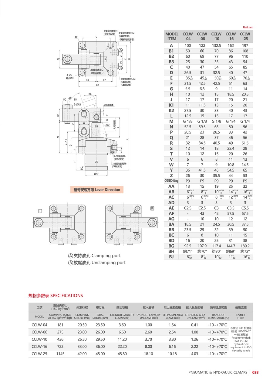 相當于ISO黏度等級的ISO-VG-32一般液壓油。