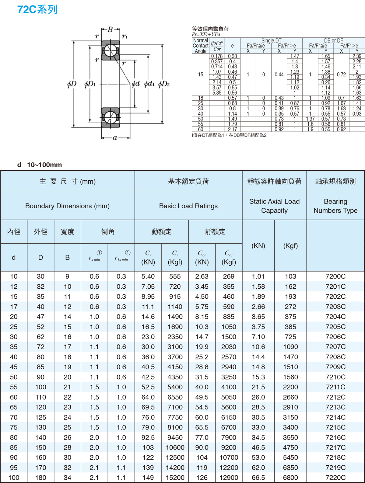 斜角滾珠軸承 72C系列
