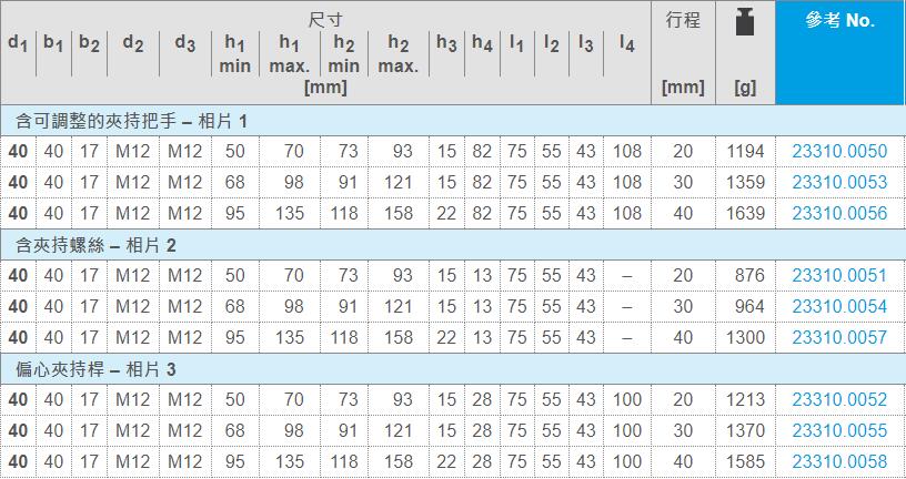 ? 借由夾持螺絲、可調(diào)節(jié)夾持把手或雙偏心夾持把手進(jìn)行快速手動夾持