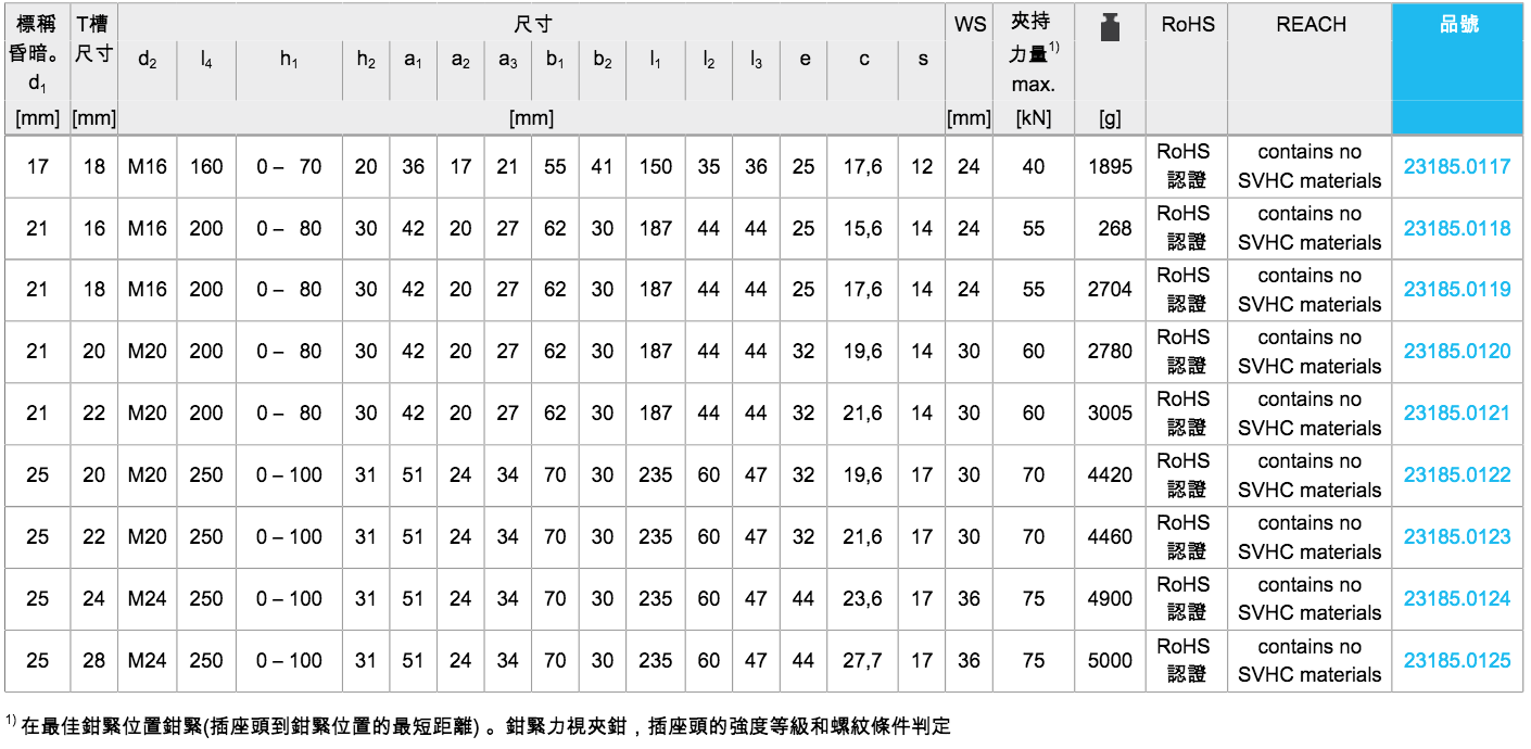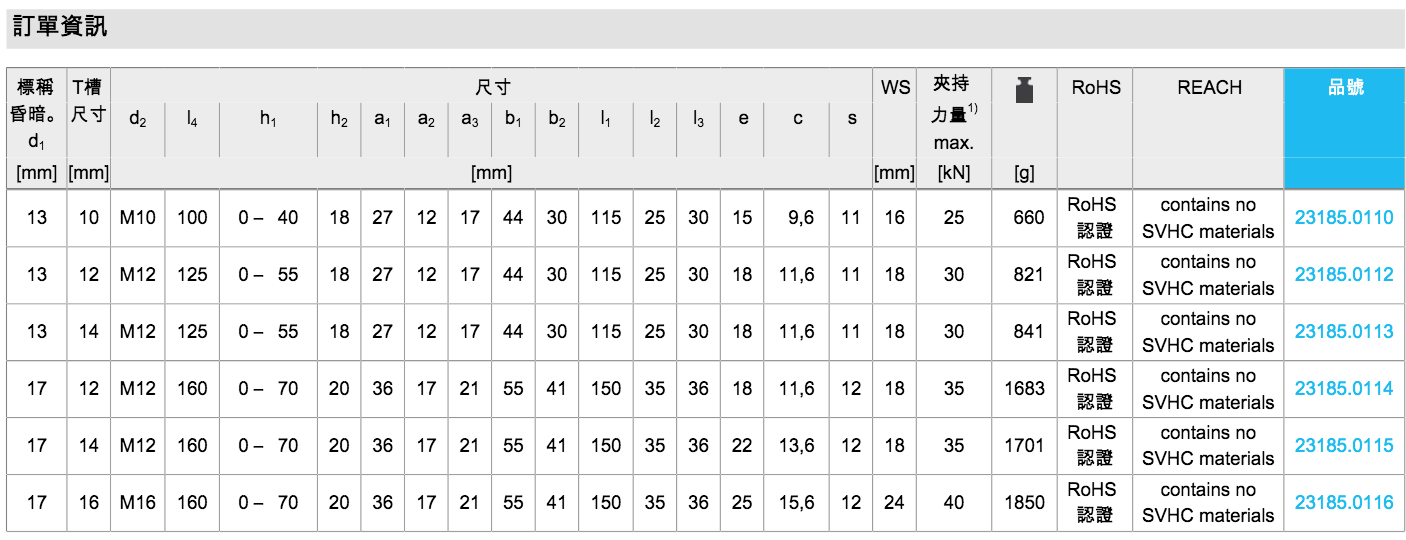 EH 23185.壓板 有溝槽,帶有可調整的反向件,以及T型螺栓(15種規格)